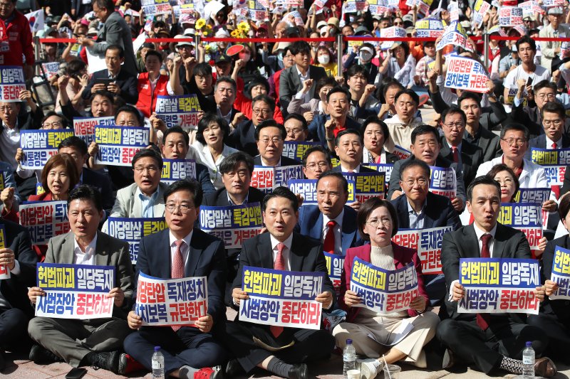 “야당 탄압을 멈춰라”, “이재명 정권은 독재다”