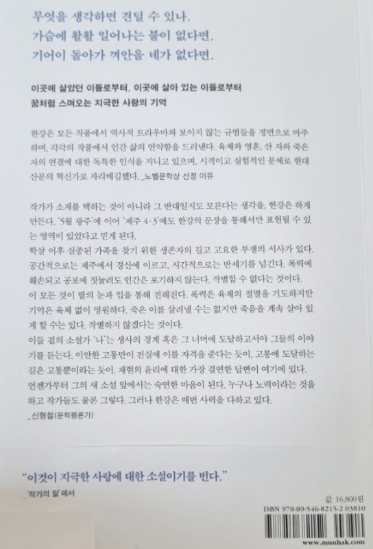 노벨상 한강작가님이 50대에 집필한 역사스페셜 그 두 번째 이야기 작별하지않는다는